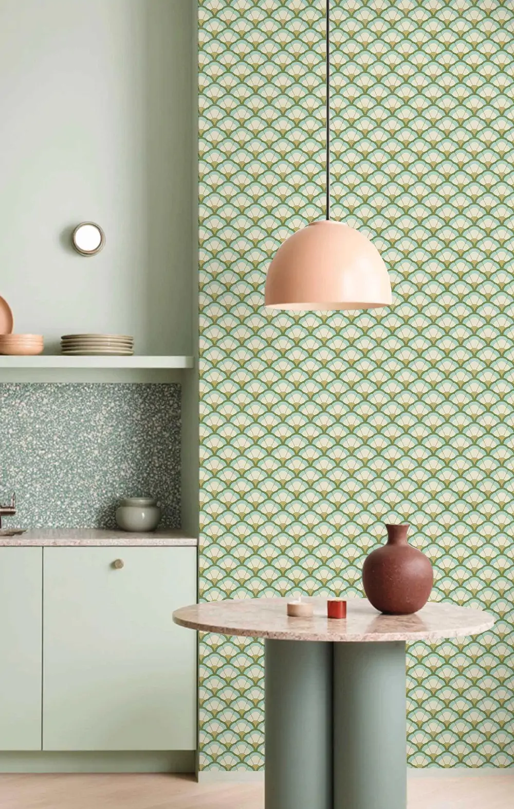 Accoppiamento rettilineo con il rapporto del disegno indicato in cm. I motivi si ripetono uno accanto all'altro alla stessa altezza A prova di spugna, lo sporco leggero può essere rimosso con un panno umido o una spugnetta