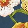 Una scena tranquilla finemente illustrata da un un bouquet di orchidee selvatiche. Colori vibranti, contrasti su fondo blu scuro, che fanno risaltare i petali.