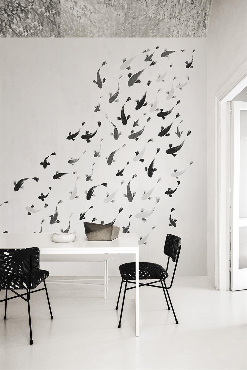 Pattern geometrico contemporaneo con linee fluide che donano movimento agli ambienti, ideale per interni moderni che richiedono eleganza e dinamismo senza eccessi visivi.
