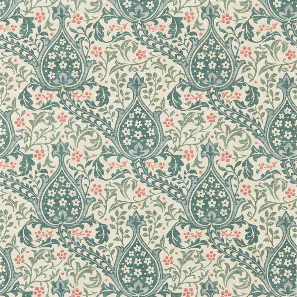 Originally designed as a textile, the Persian Tulip features elegant teardrop-shaped motifs. This updated design honours the traditional Persian aesthetic admired by William Morris and John Henry Dearle. A striking diagonal layout leads the eye through the piece, where tulip heads are nestled within a chevron ribbon. Coloured in tonal shades, the wallpaper is digitally printed, retaining a painterly movement that echoes the archive document at The Huntington. A coordinating fabric is available in the Handcrafted book.