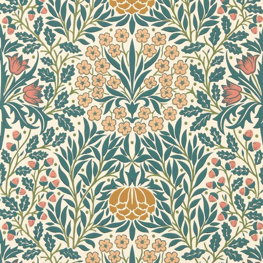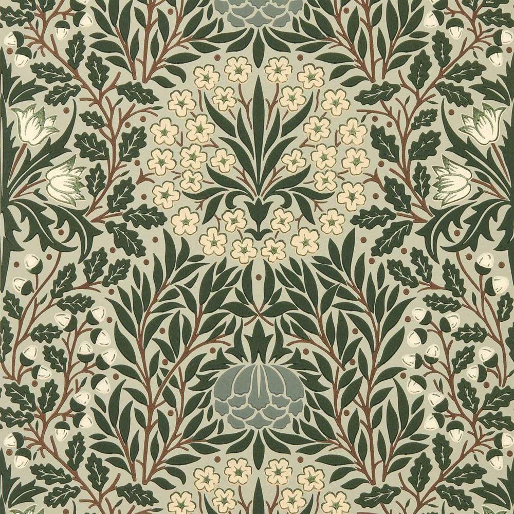 Initially designed as wallpaper and chintz, Daisy & Oak has a scattering of acorns, a beloved Morris & Co. motif, which completes the composition, forming a distinctive silhouette alongside dainty daisies and tulips. A striking central motif with an unusual layout and unique repeat, Daisy & Oak is highly decorative, bold, and unmistakably Morris & Co. Surface printed, Daisy & Oak is also available as a matching printed fabric.