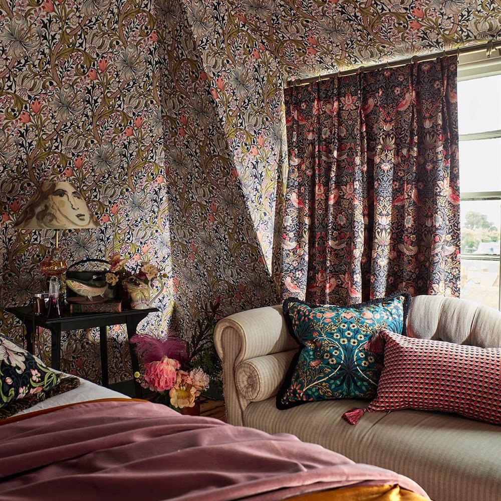 William Morris's 1883 light-fingered classic Strawberry Thief makes off with our hearts in this pair of adventurously contrasting colourways. If whisky is your poison Old Fashioned is the one for you with the striking Arts & Crafts pattern emerging riotously from a dark ground. There's always sweet pinks and teasing teals on the other hand to lend a lighter touch to interior spaces.